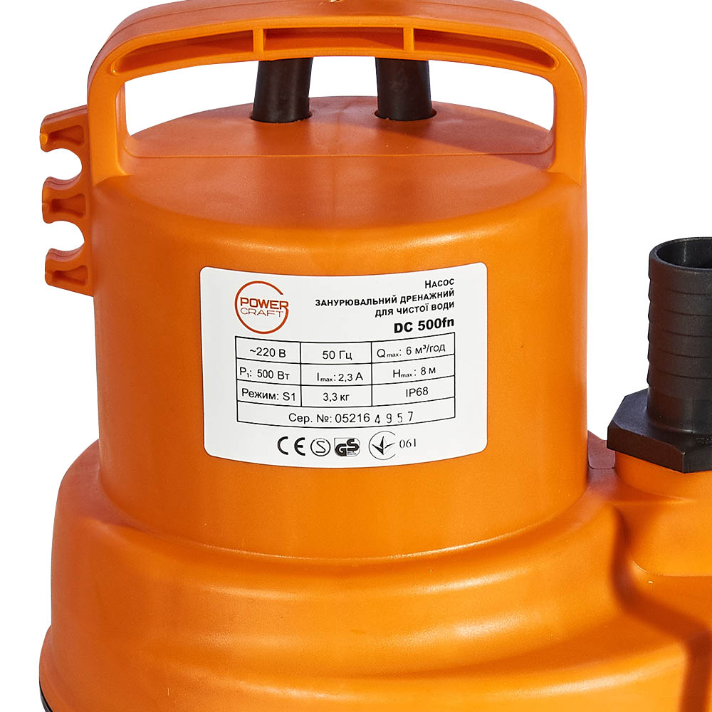Описание насоса погружного дренажного для чистой воды Powercraft DC 500fn: