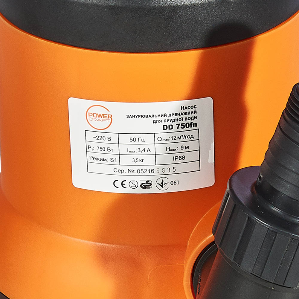 Описание насоса погружного дренажного для грязной воды Powercraft DD 750fn: